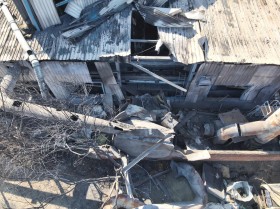 现场勘查发现:4台除尘器及管路因爆炸损毁严重,车间部分门、窗因冲击受损,屋顶、库房、维修间过火烧损,部分待加工轮毂烧损,车间内未发生燃爆。1#2#湿式除尘器除尘箱体结构完全破坏,部分连接管道损毁坠落,部分爆炸残片飞至车间内及周边区域。3#4#干式除尘器顶部结构盖板飞出,箱体变形,内部布袋完全烧损,贴临4#干式除尘器的1台空压机烧毁,3#干式除尘器周边便道及河道内干草过火。1#湿式除尘风机出口与主排气筒斜横段之间存在积尘。